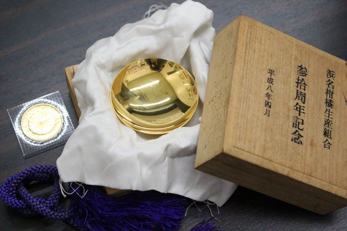 本日は、リピーターのお客様より10万円金貨や純金の金杯を